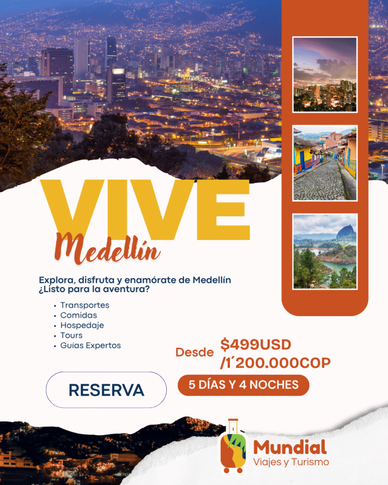 En Mundial creemos que viajar es descubrir el mundo con responsabilidad y corazón. Por eso creamos experiencias todo incluido a los destinos más bellos de Colombia y el mundo, combinando comodidad, autenticidad y sostenibilidad. Cada viaje se diseña a tu medida para que vivas momentos únicos mientras apoyas el turismo sostenible, cuidando la naturaleza y las culturas que visitas. Con Mundial Agencia de viajes, cada destino se convierte en una historia que deja huella… pero una huella verde. 🌿✈️